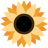 Figura de girasol danzante sobre fondo amarillo anaranjado